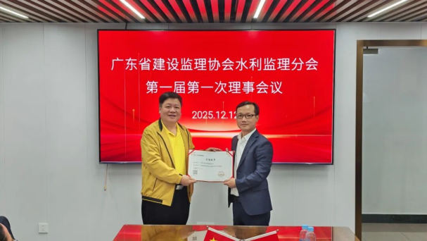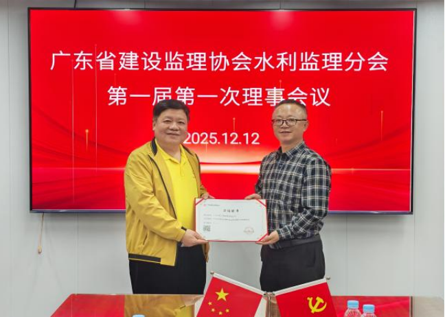 2025年12月12日下午,廣東省建設(shè)監(jiān)理協(xié)會(huì)水利監(jiān)理分會(huì)第一屆一次理事會(huì)議在廣州順利召開(kāi)。廣東省建設(shè)監(jiān)理協(xié)會(huì)秘書(shū)長(zhǎng)黃鴻欽、分會(huì)會(huì)長(zhǎng)鄭偉生及理事會(huì)成員共22人參加會(huì)議。會(huì)議由分會(huì)秘書(shū)長(zhǎng)陳光遠(yuǎn)主持。
